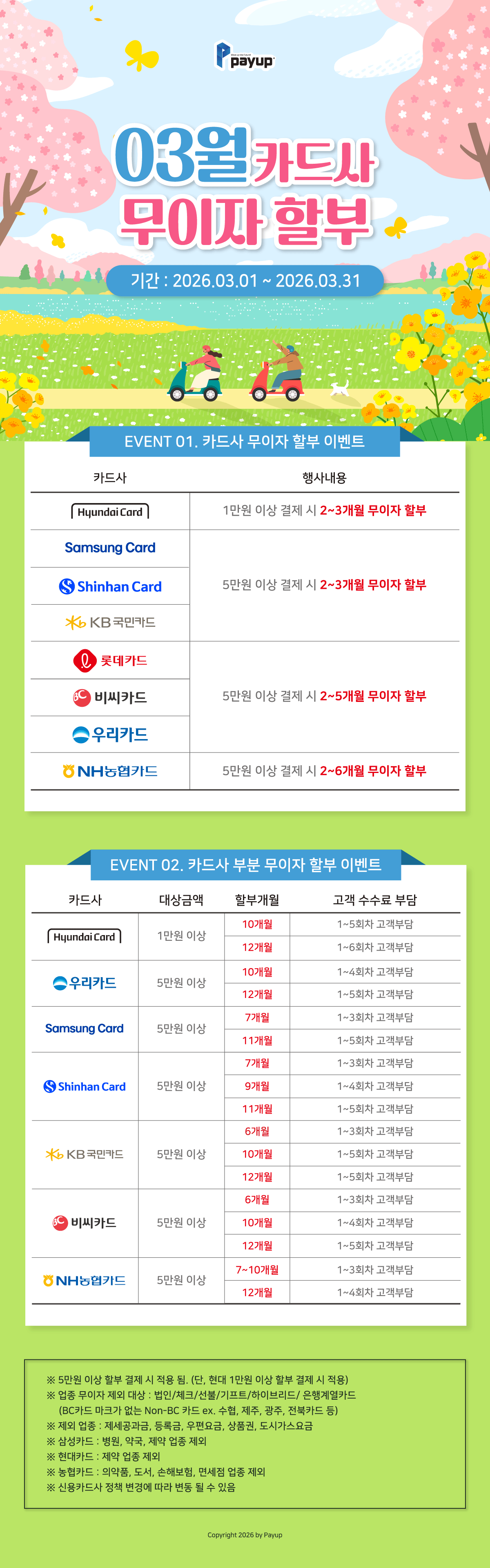 [무이자] 2026년 3월 신용카드 무이자할부 행사 안내